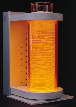 TRANSTEMP透明可视管式炉最初由MIT Lincoln Laboratory开发,与常规的管式炉不同之处在于它可以直接全程观察炉内加热管中样品的加热过程. TRANS TEMP透明可视管式炉采用金镜绝热,除了可视的特性外,由于仅仅使用金镜绝缘其还具有升降温速率快的、恒温区优于其他相同长度的常规管式炉的特点。